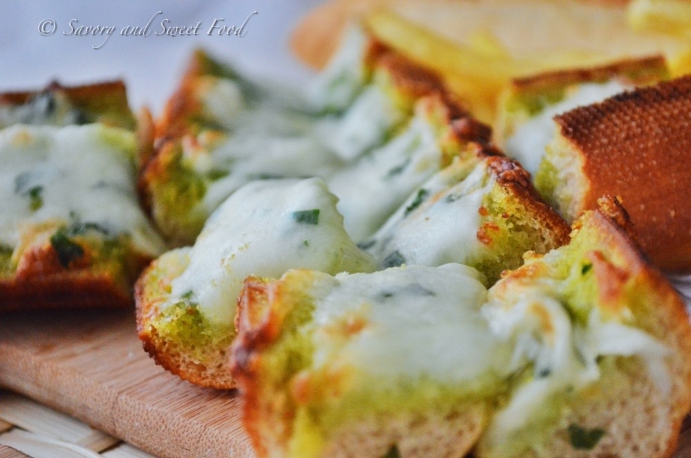 I love the way you cut up your baguette! Bread, pesto and the melted cheese…. simply divine.