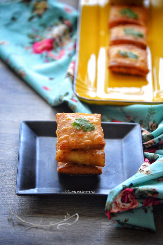 Speaking about samosa sheets, I have for you guys these cute little chicken parcels made by folding the sheets in a different way from our usual triangle shaped samosas. And the filling is quite different too. This filling with some melted mozzarella cheese inside these crispy and light samosa sheets are simply amazing. You gotta try this. 🙂
