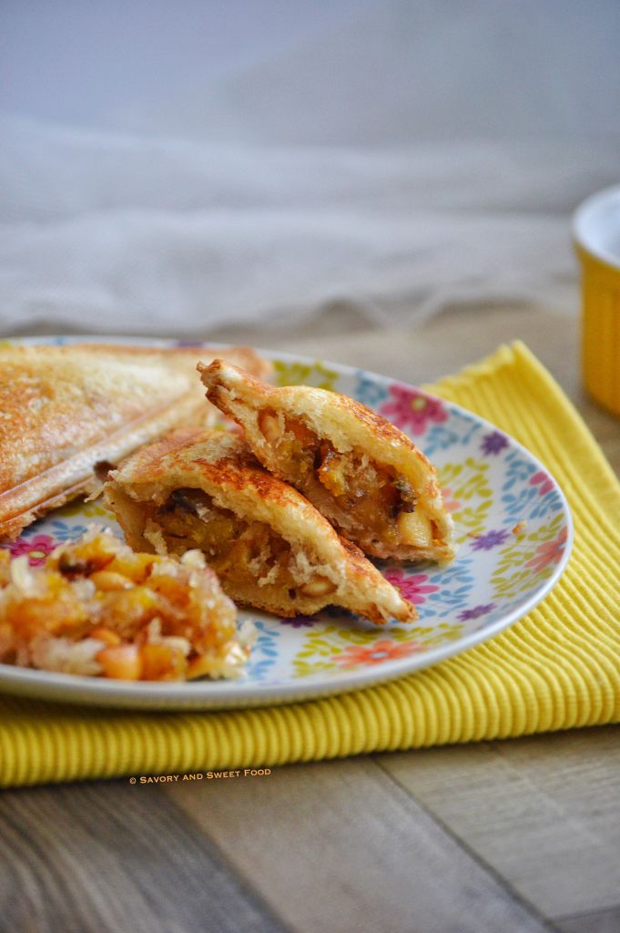 In a sandwich maker, place sliced butter on the plates. Keep the bread (you can trim the sides off if you want).- Add in the filling. Pace the other bread on top. Again add sliced butter on top of the bread.