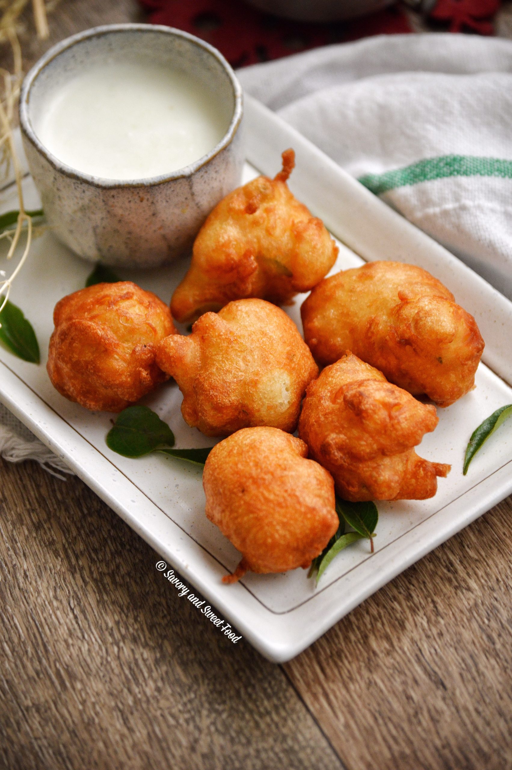 - Traditionally coconut is also added to the batter along with the onions and other things. I didn’t add, but i am sure that it will enhance the flavor of the fritters. You can add about 3-4 tsp of coconut.