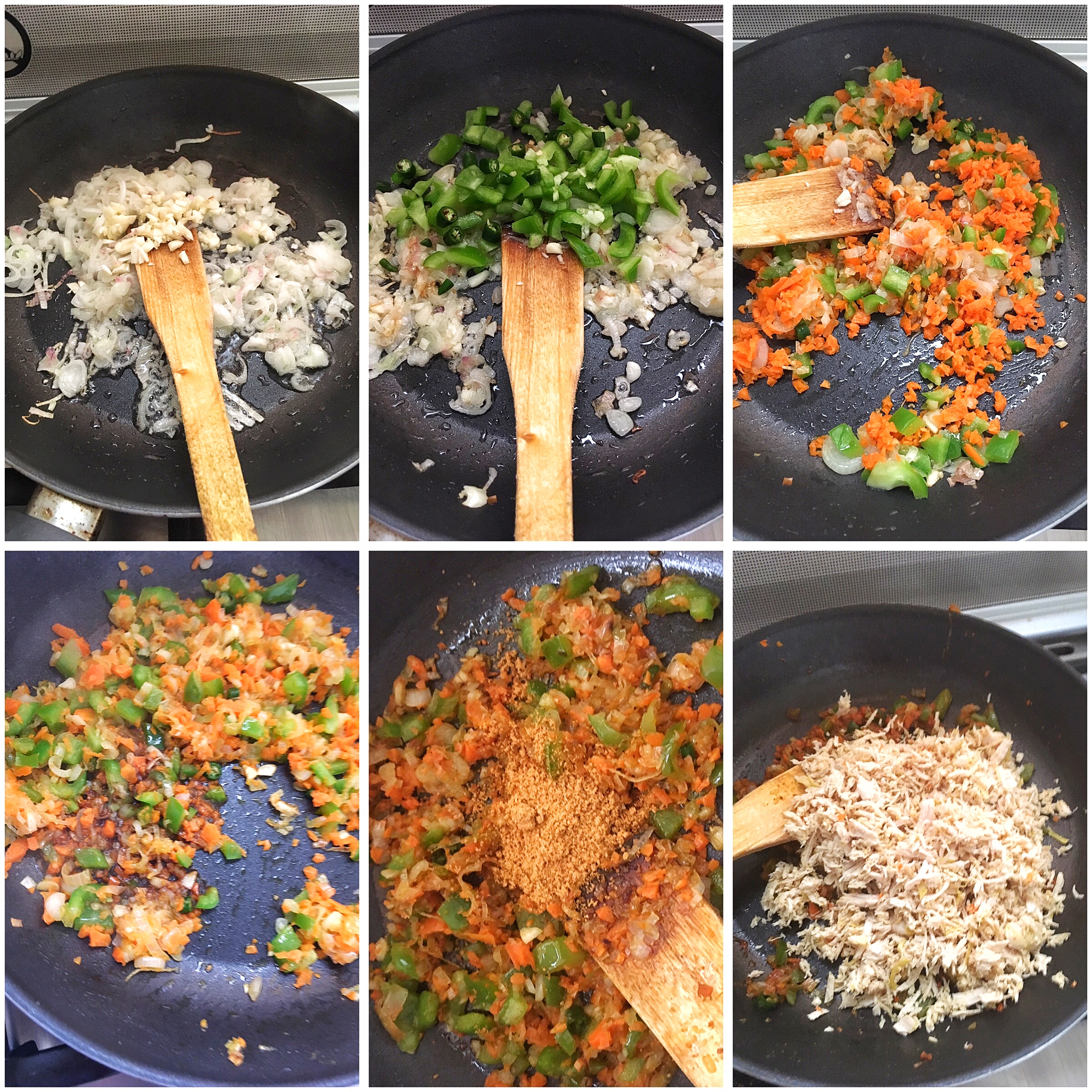 - 400g Chicken breast (boiled with black pepper, salt, turmeric powder and shredded)