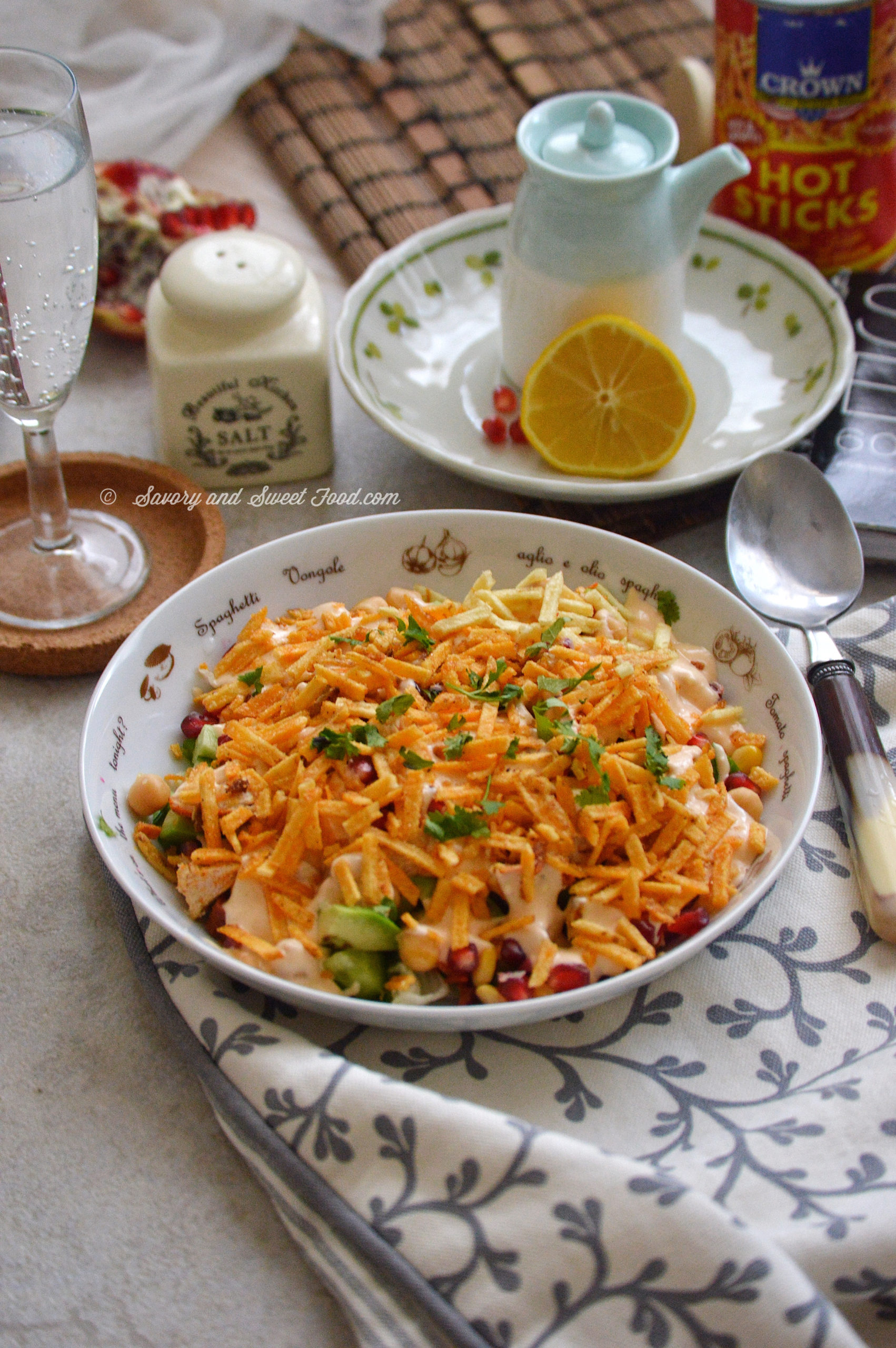 Todays recipe is that of this very simple salad. I love the dressing, I enjoy anything with tahini. I added all the things I like into this salad. It has got many fresh veggies, grilled chicken, the flavorsome dressing and yess…HOT STICKS. Hot sticks chips gives a nice crunch to the salad and I love it. If you feel that it is unhealthy, just omit it and have the salad without it. It will taste awesome that way too. But please do try with the chips at least once, it is too good. You wouldn’t feel even a bit of guilt, I swear. 😀