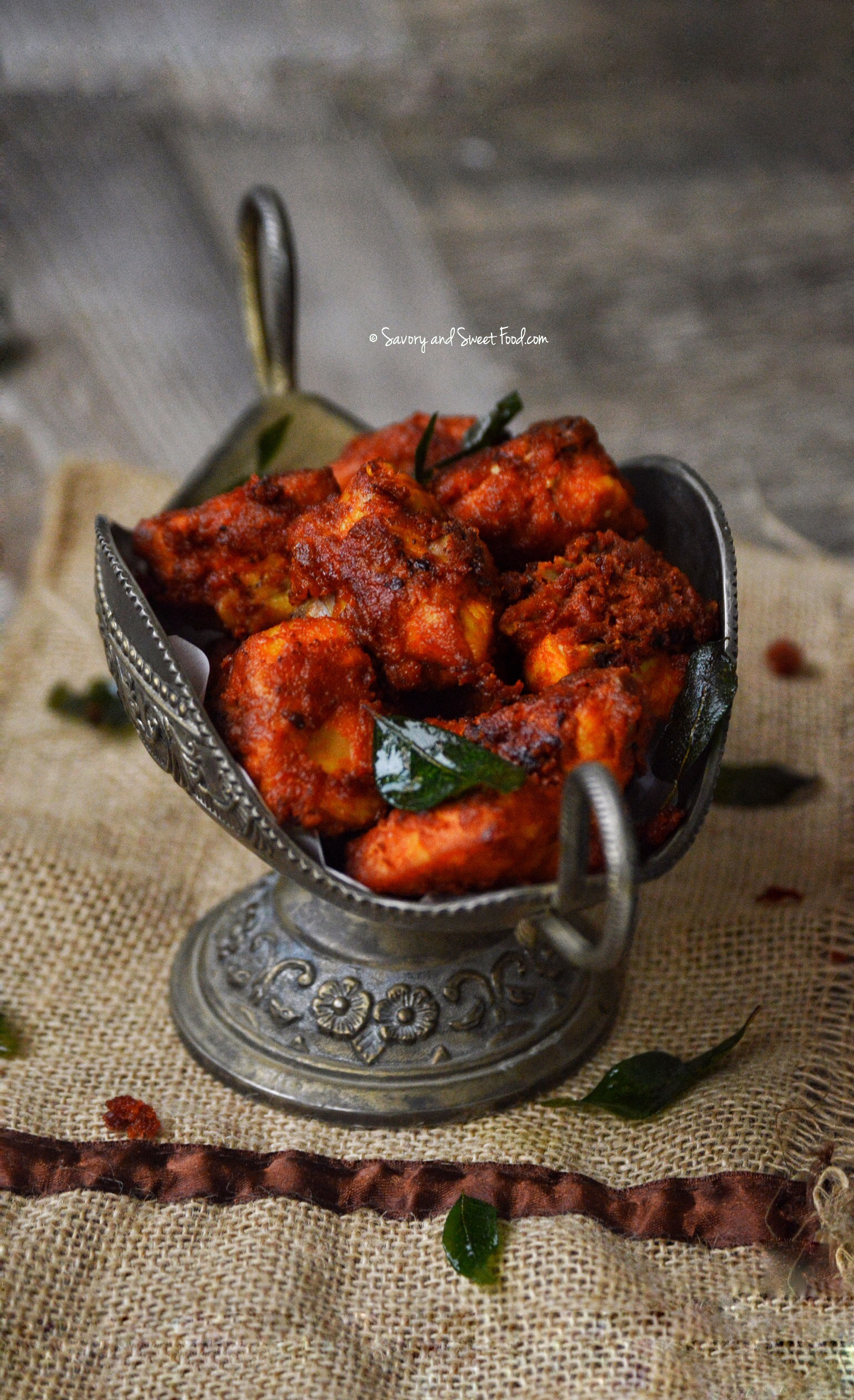 An Indian style deep fried chicken with the basic Indian masalas. The flavor of the coating on the chicken is simply fantastic.