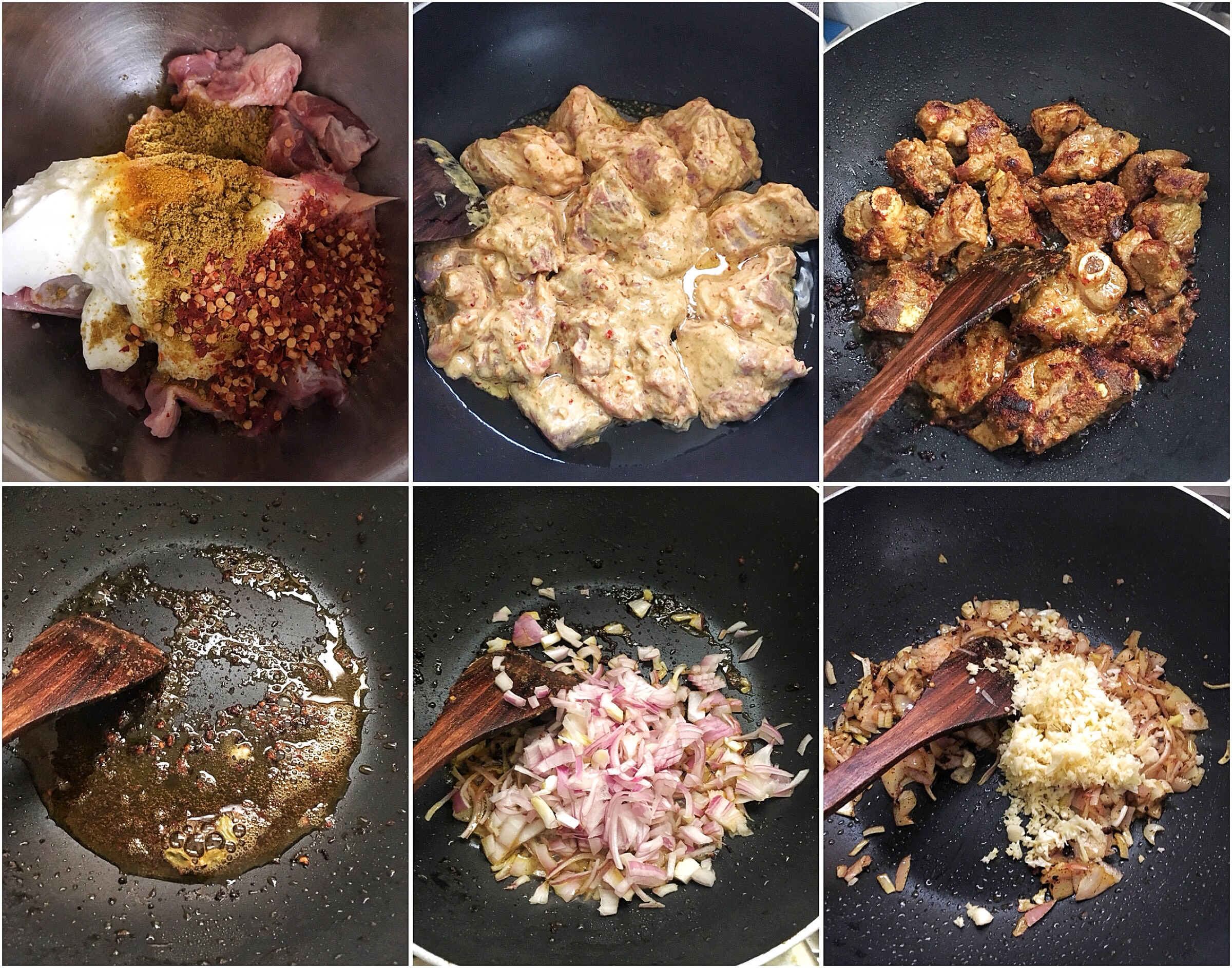 The whole cooking for this dish is done in one pot or Handi. For this preparation I would highly recommend you to slow cook in the usual pan instead of pressure cooking. Although this method takes a long time to cook the meat, the resultant flavor and texture of the meat will turn out to be amazing. And if you cook this in a clay pot, it will taste even better.