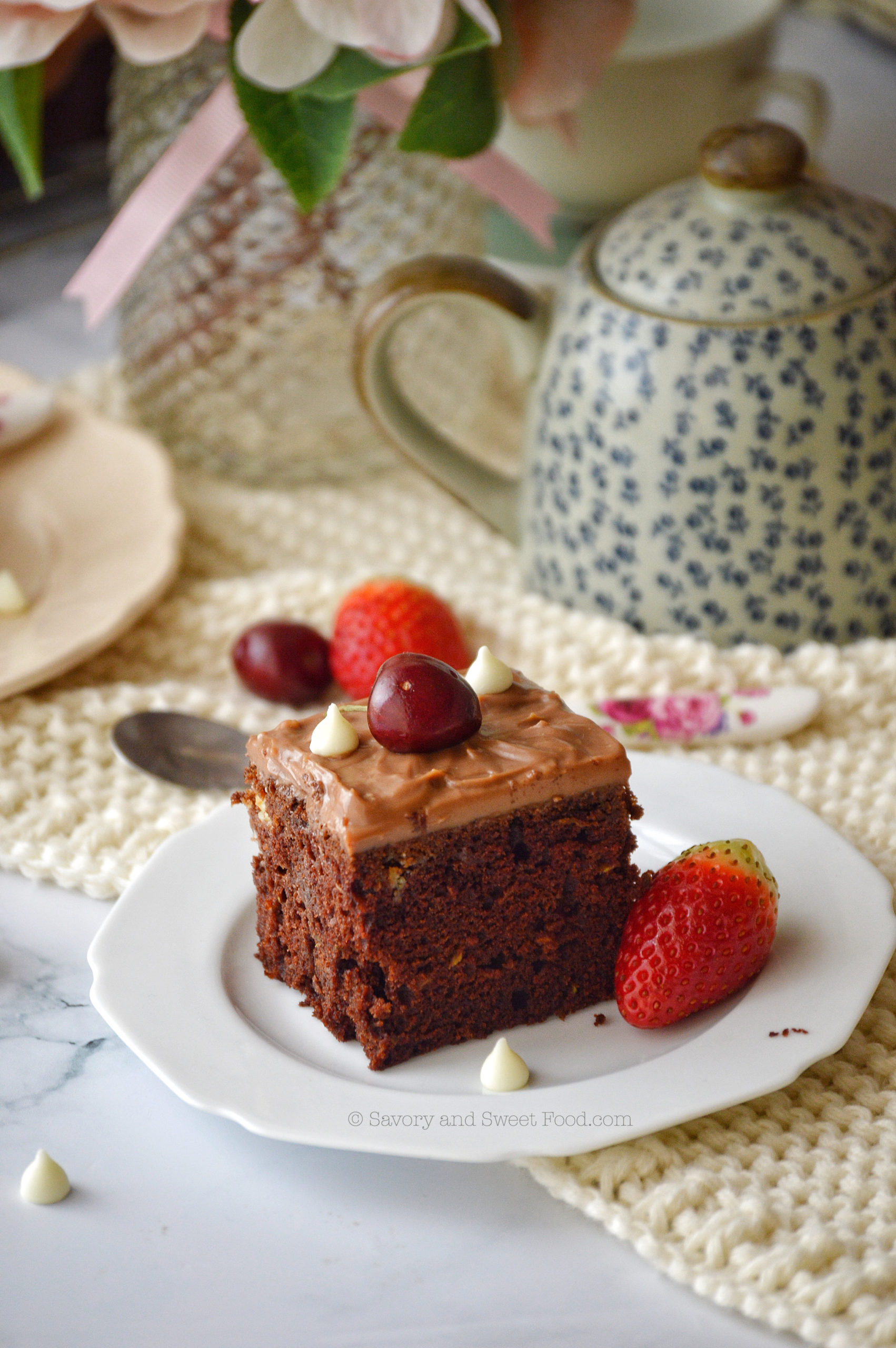 Chocolate cake made with Zucchini/ Koosa and topped with a creamy milk chocolate ganache. Never did I think that I will like a cake with Zucchini, but it is moist, tasty and plain delicious.