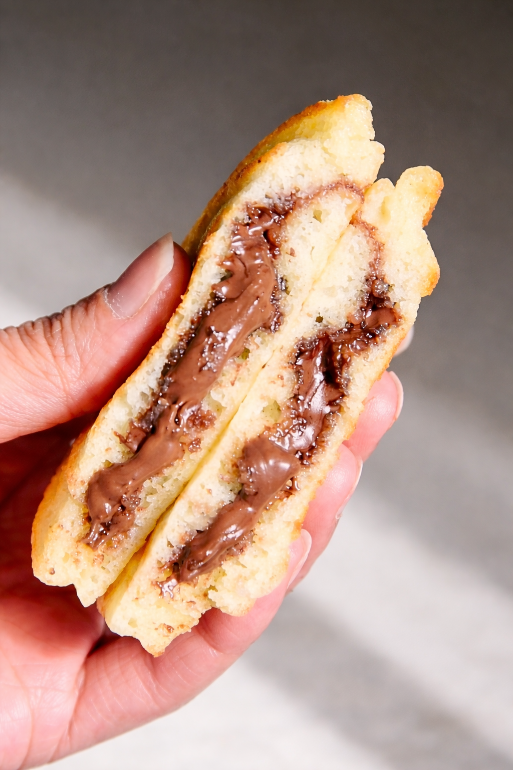 • Place a spoonful of chocolate spread in the center of the batter, keeping it away from the edges.
