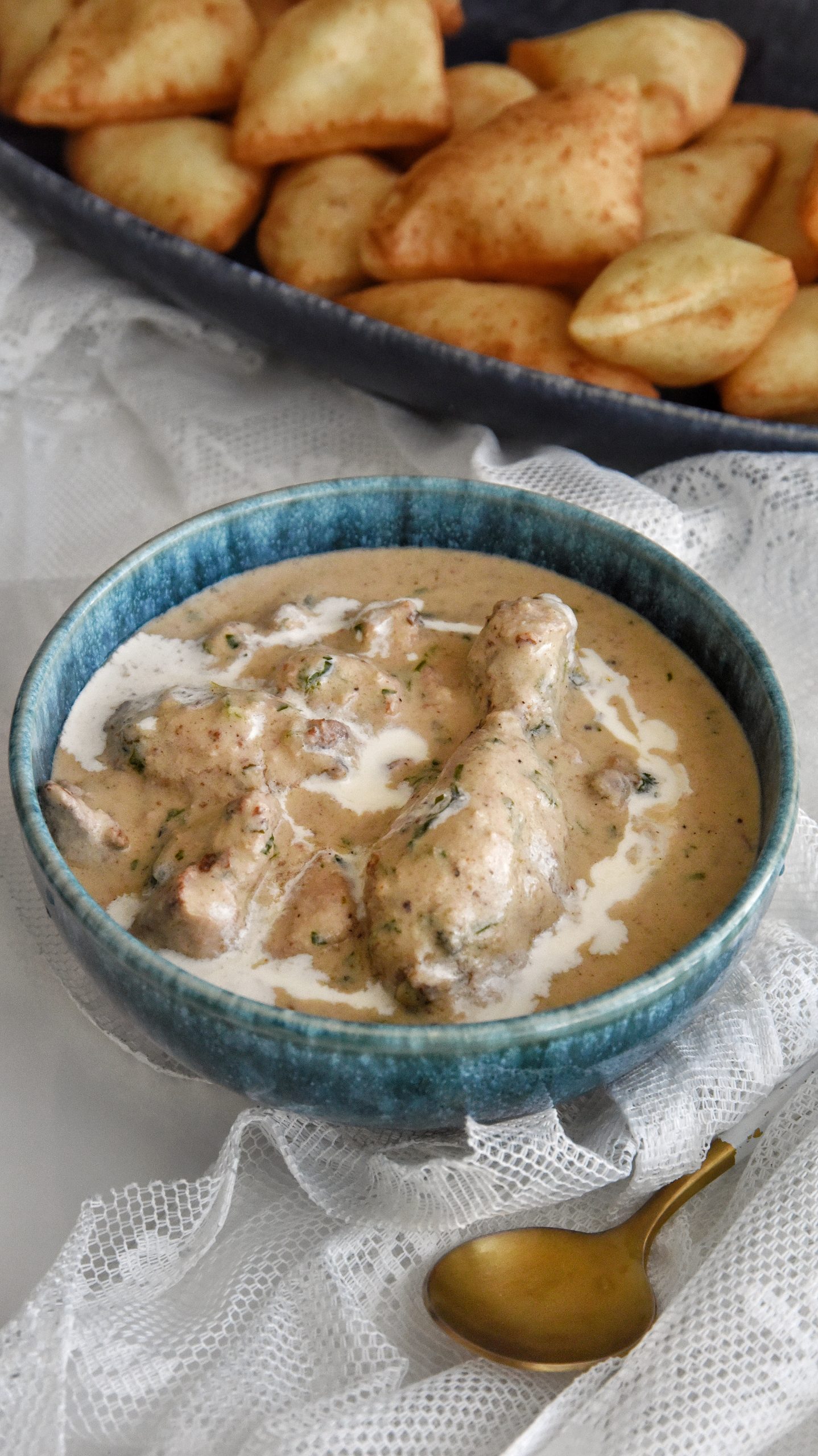 This is a mild, creamy white chicken curry made with yogurt, cashews and fresh cream. This curry is silky, elegant and full of flavour without being heavy or spicy. The base is smooth, nutty and slightly tangy — the kind of gentle flavour that feels rich but still light. It pairs beautifully with bhatura, naan,Read more